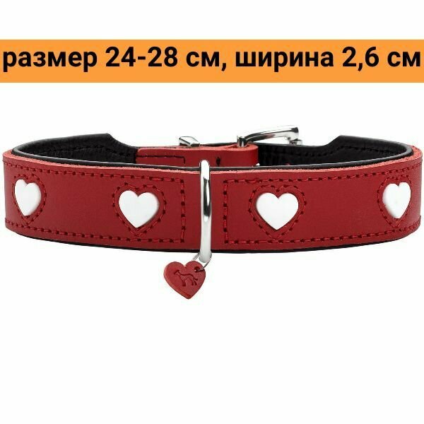 Hunter ошейник Love, цвет красный с отделкой «сердце», размер 24-28 см, ширина 2,6 см (длина ошейника 32 см): сравнение цен, характеристики, фото, актуальное наличие и цены.