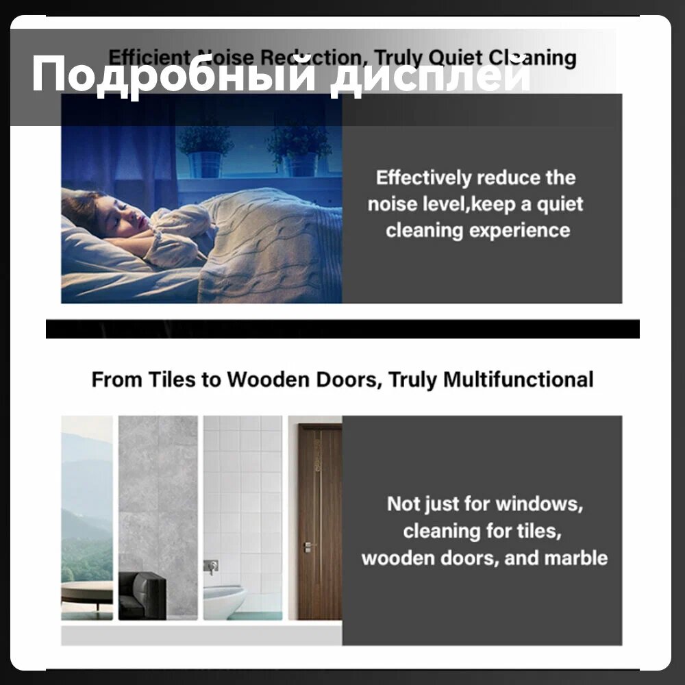 1. Размер продукта: 262*262*82 мм 2. Вес продукта: 1,9 кг 3. Номинальная мощность и напряжение: 90 Вт, 24 В 4. Емкость аккумулятора: 650мАч 5. Машина может оставаться на связи при отключении питания: 20 минут 6. Максимальная мощность всасывания: 3300 Па 7. Диапазон всасывания с преобразованием частоты AI: 2000-3300 Па 8. Шум: 70дб 9. Емкость бака для воды: 150 мл 10. Угол распыления: 140 градусов ~ 160 градусов 11.5 мм ткань из микрофибры: 30 г хранения пыли 12. Домкрат: европейский манометр 13. Режим очистки: сухая протирка, влажная протирка 14. Скорость уборки: 11 см/с 15. Маршрут очистки: N маршрут, Z маршрут 16. Область применения: стекло, деревянные двери, мрамор, плитка и т. д. 17. Чистое стекло без полей: поддержка 18. Кнопка: 1 19. Автоматический возврат в исходное положение после очистки: поддержка 20. Высокоточный контроль краев: Да 21. Пересечение зазора: поддержка 22. Длина страховочного троса: 1 м 23. Минимальная площадь очистки: 40*40 см 24. Комплектация: хост *1, чистящая ткань *3, пульт дистанционного управления *1, бутылка для воды *1, адаптер питания *1, вилка *1, страховочный трос *1, руководство пользователя *1