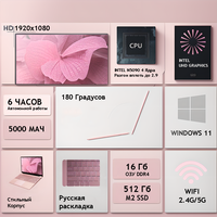Купить Ноутбук 15.6″, Intel Celeron N5095 (2.9 ГГц), RAM 16 ГБ, SSD 512 ГБ, Intel UHD Graphics, Windows 11 Pro, Розовый, Русская раскладка с доставкой по всей России.