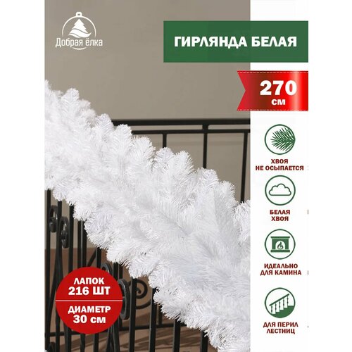 Купить Хвойная гирлянда Добрая елка белая 270 см, пушистая, ПВХ, растяжка. с доставкой по всей России. Хвойная гирлянда Добрая елка белая 270 см, пушистая, ПВХ, растяжка.: сравнение цен, характеристики, фото, актуальное наличие и цены.
