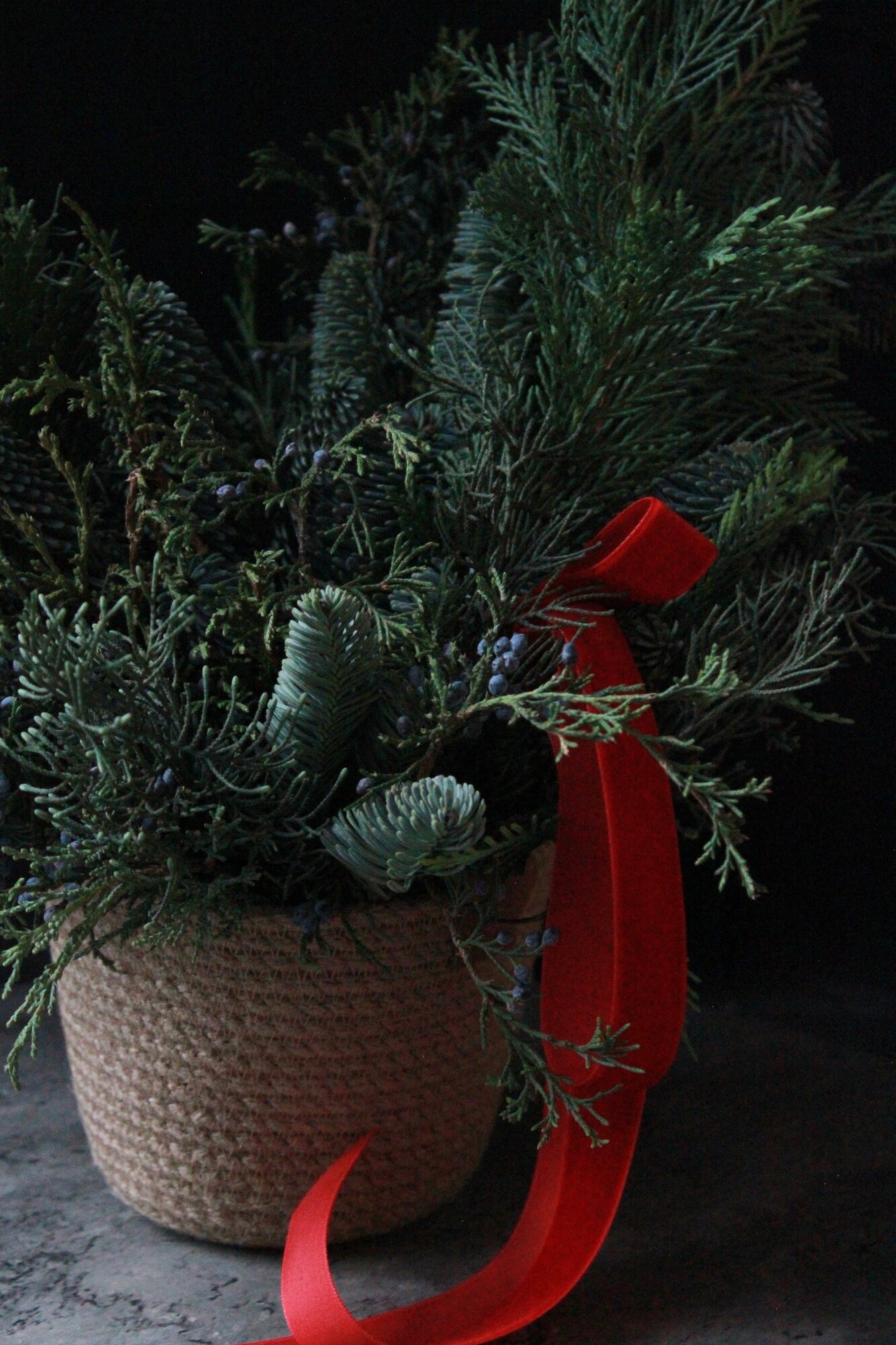 Хвойная композиция KLUMBA MOSCOW «Green», 35×25 см, с красной лентой