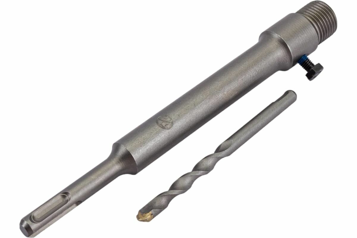 Хвостовик для коронок типа SDS+ . Предназначены для крепления коронок в ударных дрелях и перфораторах. Поставляются в комплекте с центровочным направляющим сверлом по бетону с твердосплавной пластиной и крепежом.