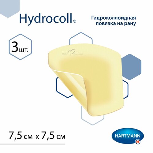 Купить Hydrocoll (Гидроколл) — Самофиксирующаяся гидроколлоидная повязка, стерильная, 7,5 см х 7,5 см, 3 шт. с доставкой по всей России.