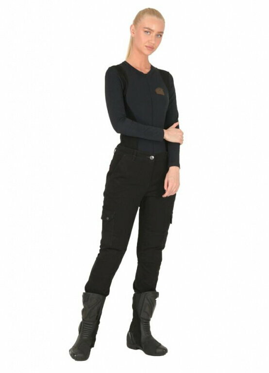 Мотоштаны Hyperlook Barracuda Woman c арамидным подкладом и защитными вставками CC PROTECTORS в области бедра и колена, придадут женской фигуре красоту и изящество, в совокупности с высокой степенью защиты. Арамидная ткань полностью покрывает тазовый отдел , как с передней стороны так и с задней стороны , дополнительно арамидная ткань присутствует в области коленей. Женские мотоштаны карго Barracuda woman отличная альтернатива классическим джинсам, они выглядят максимально граждански, при этом в модели Barracuda Woman вы максимально защищены. Защитная вставка колена регулируется по высоте в 3-х положениях.