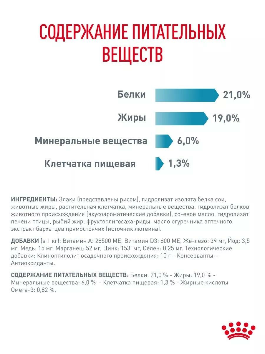 Корм Hypoallergenic Canine содержит комплекс Intensive Colour, обогащенный L-тирозином, который поддерживает интенсивность естественного окраса шерсти. Корм Hypoallergenic Canine также возможно применять при хроническом зудящем дерматите с симптомами аллергии, включая атопический дерматит. .