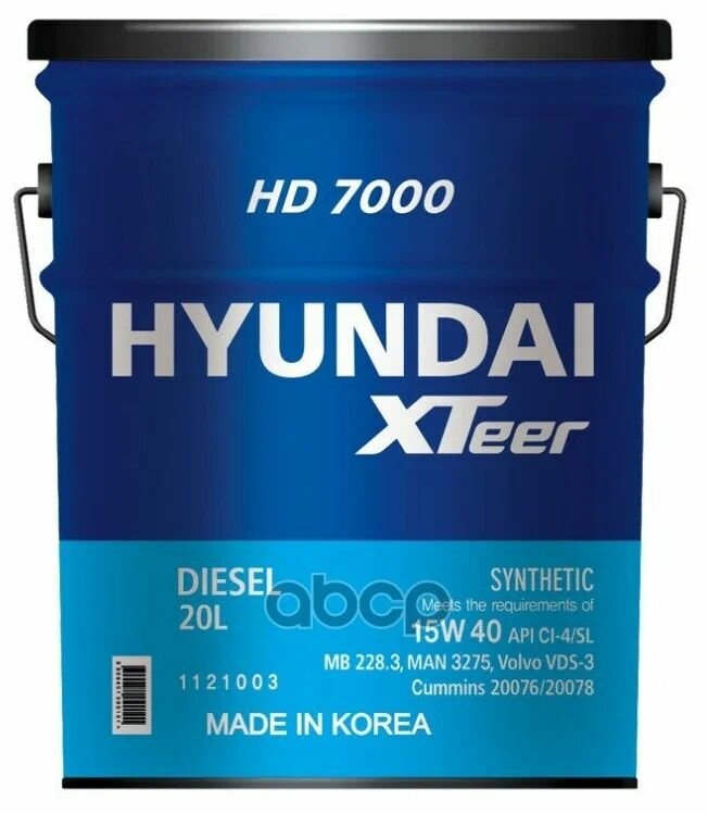 HYUNDAI-XTEER 1121003 Масло синтетическое моторное для грузовой техники HD 7000 15W40 CI-4 20 л: сравнение цен, характеристики, фото, актуальное наличие и цены.