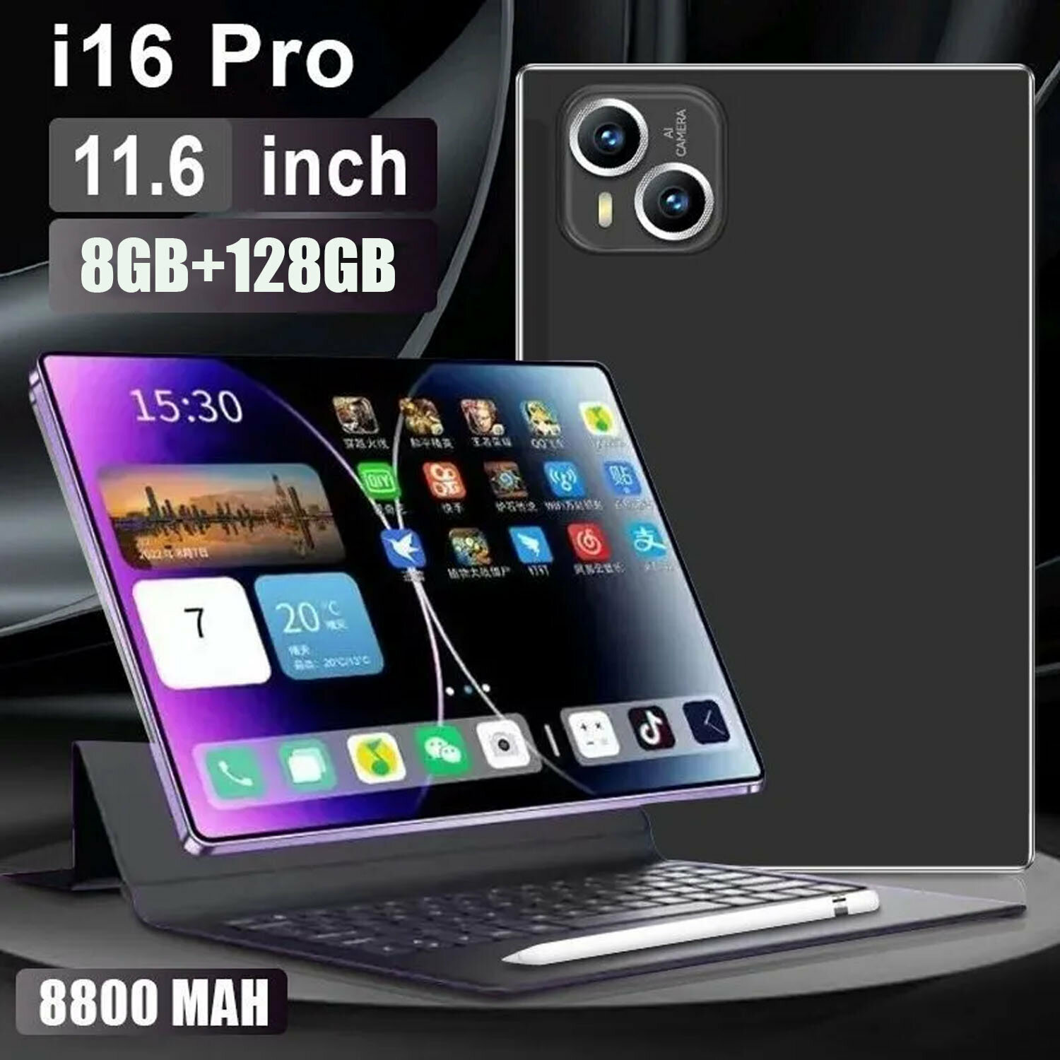 I16Pro на базе Android 13 со сверхвысокой четкостью изображения, полноэкранный 5G-офис netcom entertainment, многофункциональный игровой онлайн-планшет «два в одном» для обуч, 11.6″ 8 ГБ/128 ГБ, Черный