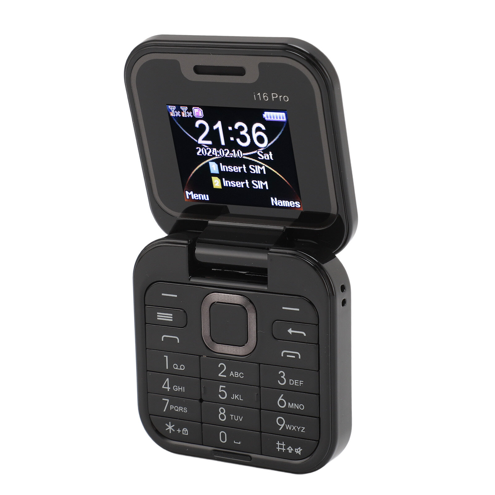 Купить I16pro Small Flip Phone Dual SIM Standby 16GB Memory Card Multi Languages 2G Pocket Cellphone for Kids Seniors Black с доставкой по всей России.