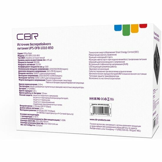 Купить ИБП Cbr UPS-OFB-101E-850 850VA 510W с доставкой по всей России. ИБП Cbr UPS-OFB-101E-850 850VA 510W: сравнение цен, характеристики, фото, актуальное наличие и цены.
