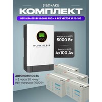 ИБП для котла с аккумулятором ИБП ALFA-ESS EP18 PRO 5кВт, 48В + 4 АКБ Vektor Energy XP 100Ач, 12В / бесперебойник для котла отопления / источник бесперебойного питания для дома