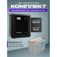 Купить ИБП для котла с аккумулятором ИБП Энергия Smart.2 600Вт, 12В + АКБ Vektor Energy XP 75Ач, 12В / бесперебойник для котла отопления / источник бесперебойного питания с доставкой по всей России.