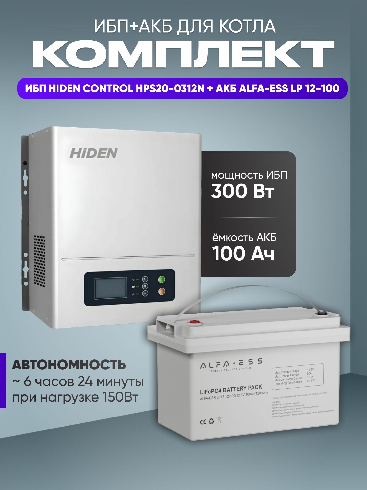 Купить ИБП для котла с аккумулятором ИБП Hiden Control HPS20 300Вт, 12В + АКБ ALFA LP15 100Ач, 12В / бесперебойник для котла отопления / источник бесперебойного питания с доставкой по всей России.