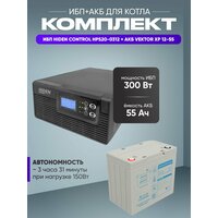 ИБП для котла с аккумулятором ИБП Hiden Control HPS20 300Вт, 12В + АКБ Vektor Energy XP 55Ач, 12В / бесперебойник для котла отопления / источник бесперебойного питания