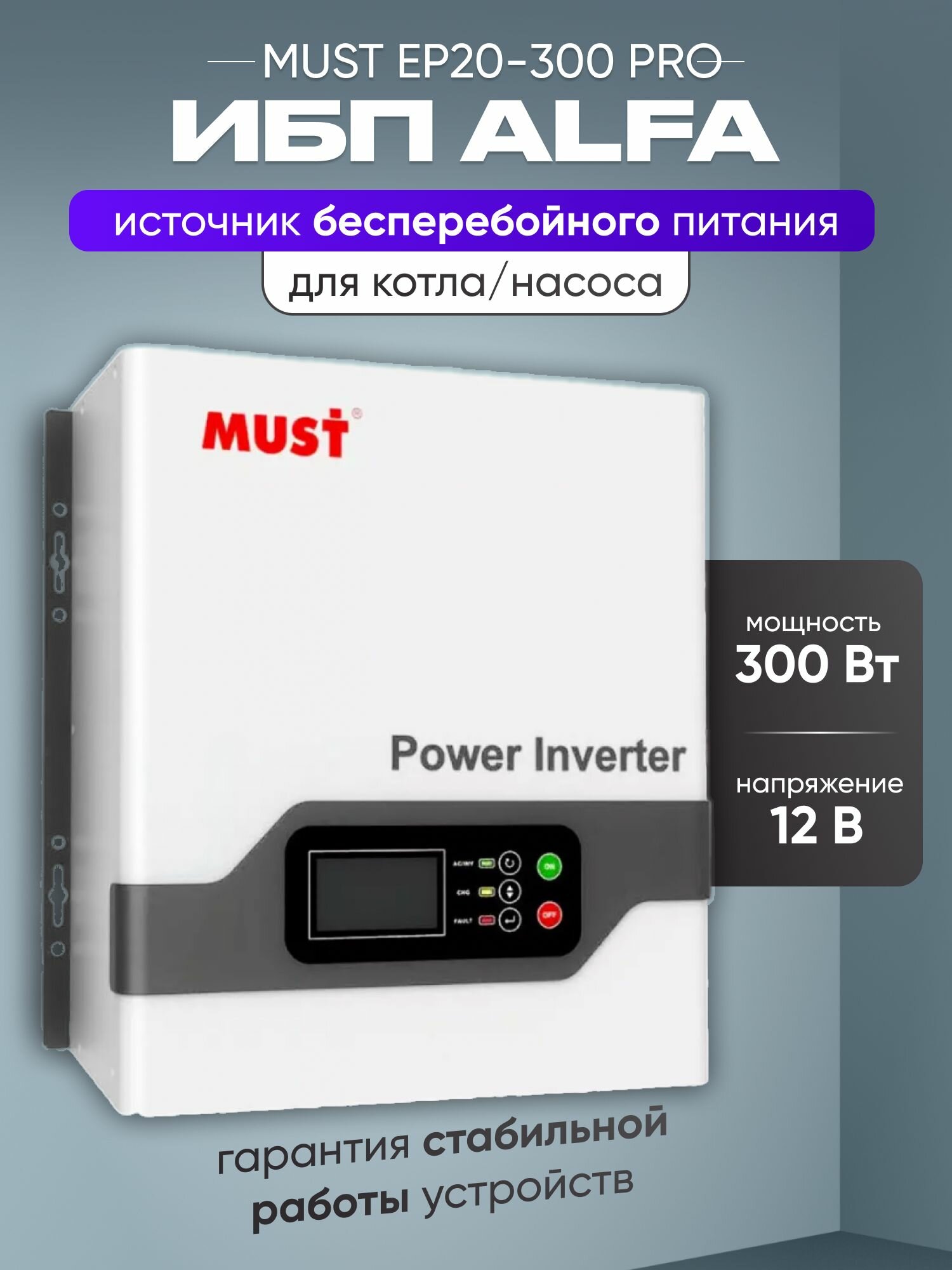 Купить ИБП для котла с аккумулятором ИБП MUST EP20 PRO 300Вт, 12В + АКБ ALFA GPL 100Ач, 12В / бесперебойник для котла отопления / источник бесперебойного питания с доставкой по всей России.