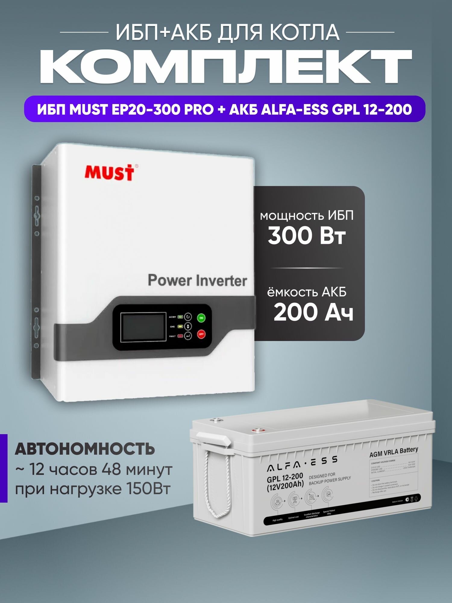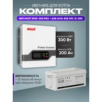 Купить ИБП для котла с аккумулятором ИБП MUST EP20 PRO 300Вт, 12В + АКБ ALFA GPL 200Ач, 12В / бесперебойник для котла отопления / источник бесперебойного питания с доставкой по всей России.