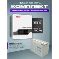 Купить ИБП для котла с аккумулятором ИБП MUST EP20 PRO 300Вт, 12В + АКБ Vektor Energy XP 100Ач, 12В / бесперебойник для котла отопления / источник бесперебойного питания с доставкой по всей России.