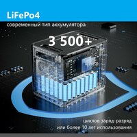 овременный LiFePo4 литий железо фосфатный тип батареи - более безопасный по сравнению с Li-Ion, увеличенным ресурсом более 3500 циклов заряд-разряд (по сравнению с 500-1000 ресурсом Li-Ion).