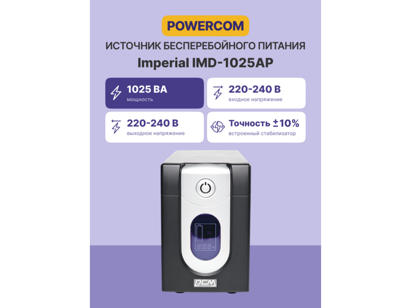 Ибп Powercom IMD-1025AP, LCD, линейно-интерактивный, 1025 вA, 619 вт, 4 розетки IEC320 C13 с резервным питанием, 2 розетки IEC320 C13 с фильтрацией, USB, защита RJ45/RJ11, шхгхв 130х382х192мм, 13.4 кг ибп Powercom IMD-1025AP, LCD, линейно-интерактивный,: сравнение цен, характеристики, фото, актуальное наличие и цены.