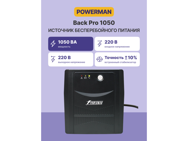 Ибп POWERMAN Back Pro 1050, линейно-интерактивный, 1050ва, 600вт, 4 евророзетки с резервным питанием, батарея 12в 7ач 2 шт, 353мм х 149 мм х162мм, 7.9 кг. ибп POWERMAN Back Pro 1050, линейно-интерактивный, 1050ва, 600вт, 4 евророзетки с резервным питание: сравнение цен, характеристики, фото, актуальное наличие и цены.