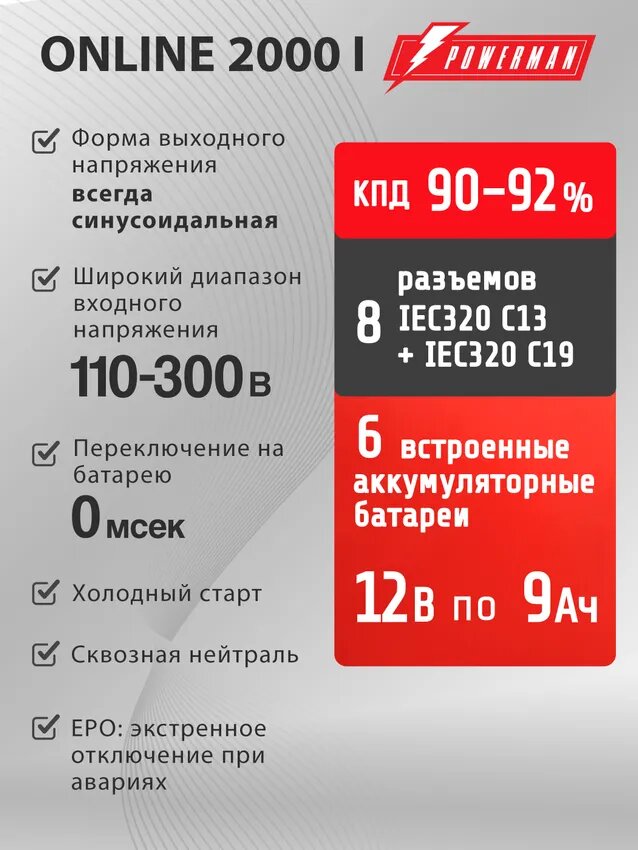 ИБП POWERMAN Online 3000 I N ВА c двойным преобразованием, для чувствительной техники: сравнение цен, характеристики, фото, актуальное наличие и цены.