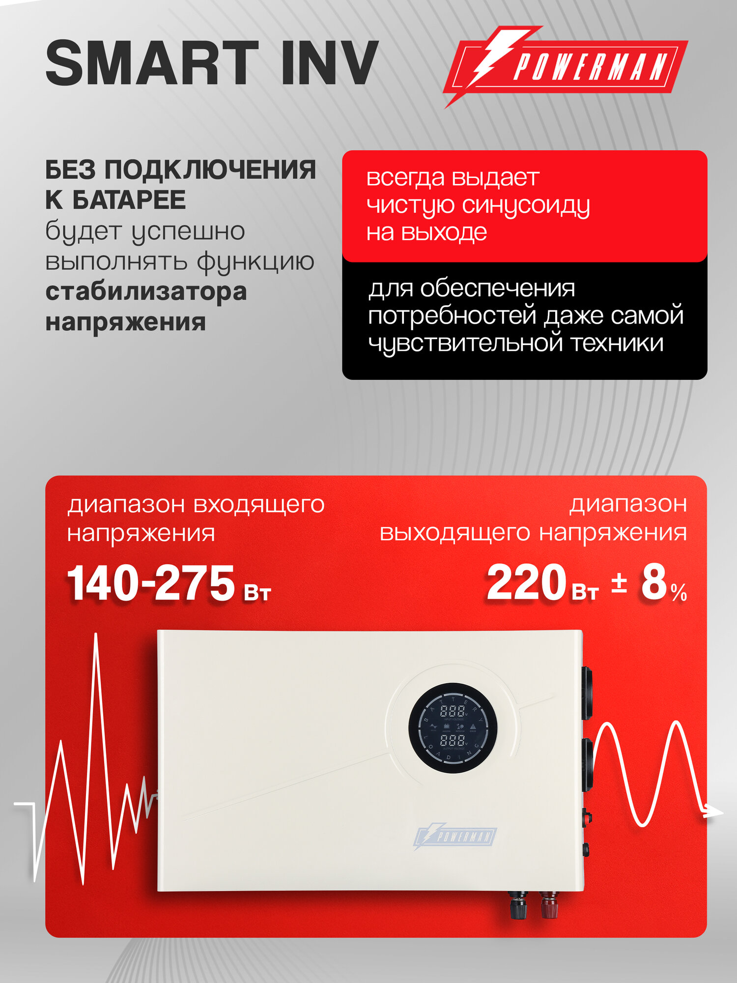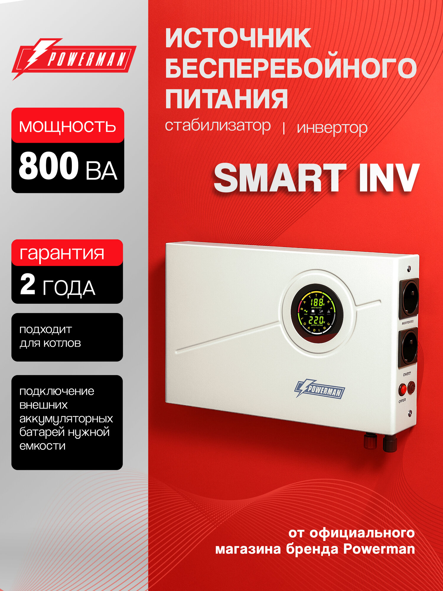 POWERMAN SMART 800 INV предназначен для защиты питания и обеспечения длительной автономной работы при отключении электросети как промышленного, так и бытового электрооборудования.