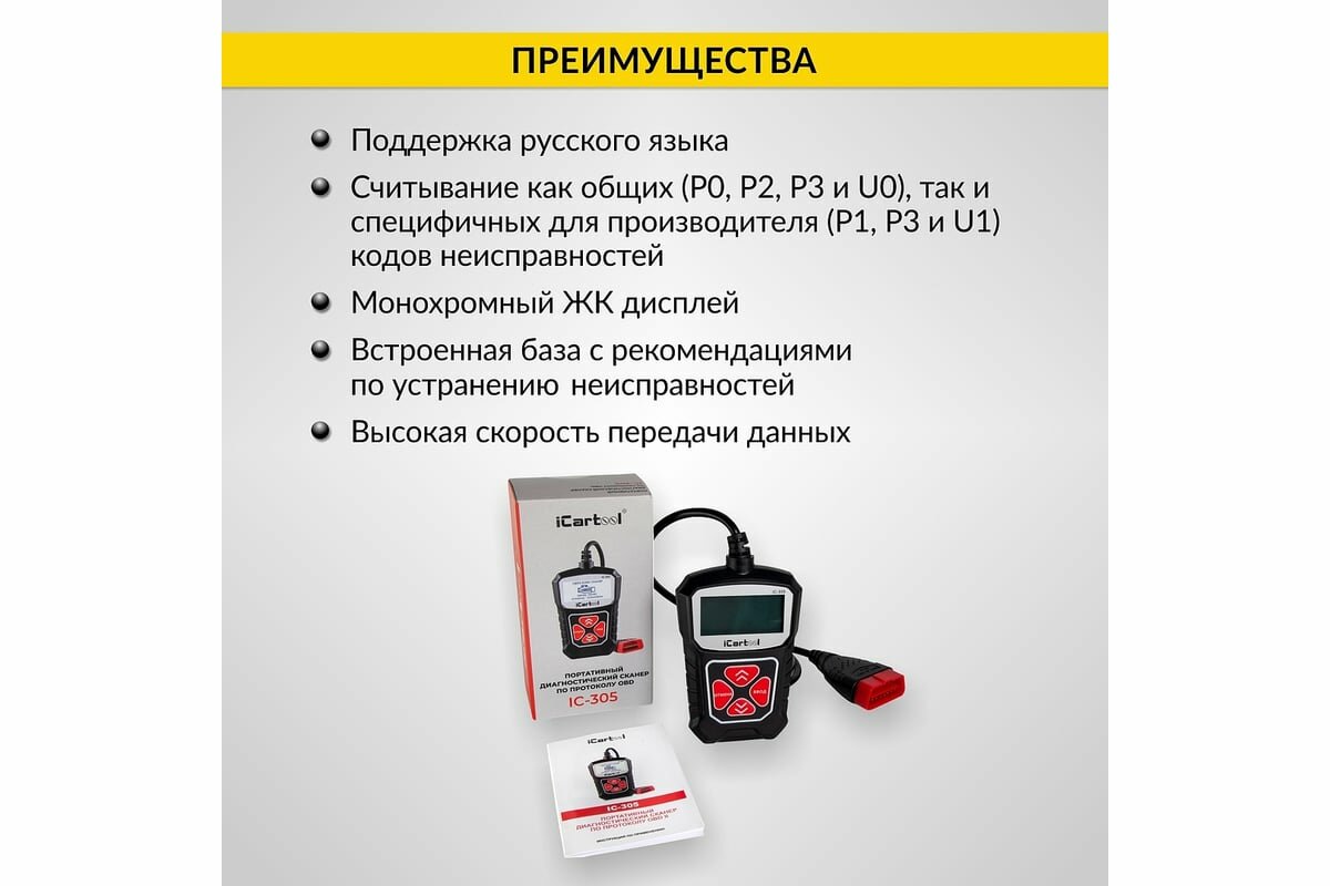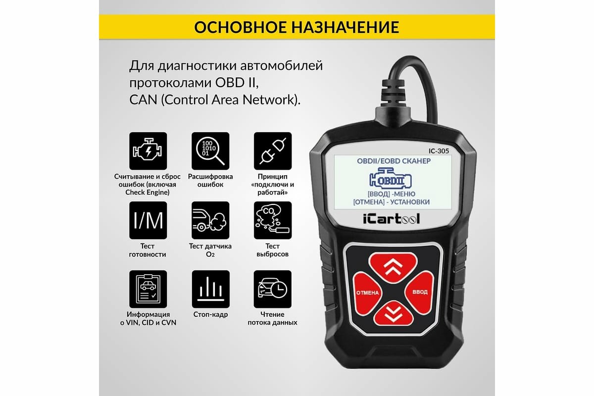 Купить ICarTool Портативный диагностический сканер по протоколу OBDII IC-305 с доставкой по всей России. ICarTool Портативный диагностический сканер по протоколу OBDII IC-305: сравнение цен, характеристики, фото, актуальное наличие и цены.