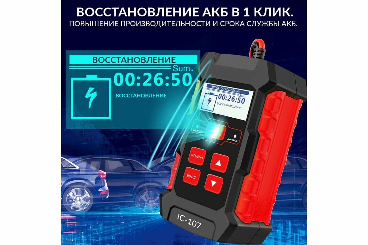 Купить ICarTool Тестер АКБ с функцией восстановления, зарядное устройство, 3 в 1 IC-107 с доставкой по всей России.