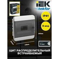 Купить Электрощит IEK TEKFOR TF5-KP12-V-08-41-K01-K03 ЩРВ-П-8, IP41, встраиваемый, прозрачный, черный с доставкой по всей России.