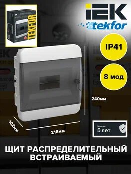Электрощит IEK TEKFOR TF5-KP12-V-08-41-K01-K03 ЩРВ-П-8, IP41, встраиваемый, прозрачный, черный: сравнение цен, характеристики, фото, актуальное наличие и цены.