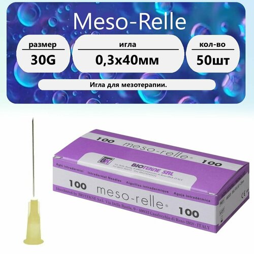 Иглы для мезотерапии и микроинъекций (торговая марка «Meso-Relle») изготовлены из высококачественной хирургической стали, которая обеспечивает долговечность и надёжность при использовании. Сверхострые, с лазерной обработкой, инъекционные иглы имеют уникальную заточку ланцетного типа, которая не режет, а раздвигает ткани, делая укол практически безболезненным. Это сводит к минимуму усилия при уколе, предотвращает травму тканей и упрощает инъекцию. Иглы 30G (0,3 х 40 мм) отличает высокое качество исполнения, точность введения медицинских препаратов, безболезненность укола для пациента. Алмазная заточка иглы позволяет использовать иглу до 200 инъекций за одну процедуру. Характеристики; Диаметр иглы: 30G (0,3 мм) Длина иглы: 40 мм Цвет канюли: жёлтый Глубина введения препарата: 0,5 – 40 мм Тип заточки: алмазная Производство: «Biotekne SLR» ( Италия ) Используются в работе медицинскими работниками (введение инсулина, витаминов и других лекарственных препаратов), косметологами (инъекции гиалуроновой кислоты, ботулотоксина, витаминов, аминокислот и других питательных веществ в кожу, устраняя: сухость кожи, пигментацию, мелкие морщины, акне, постакне, растяжки, рубцы, обезвоженность кожи).