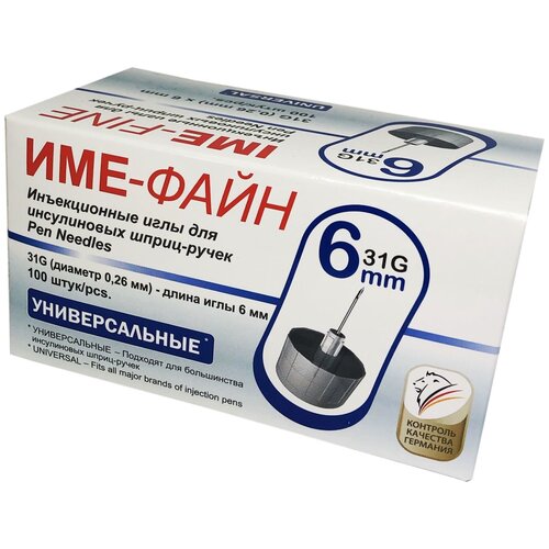 иглы IME-FINE универсал инъекц однораз для инсулин шприц-ручек 31G 0,26Х6ММ - подходят иглы для шприц-ручек от 90% всех производителей, представленных на рынке.