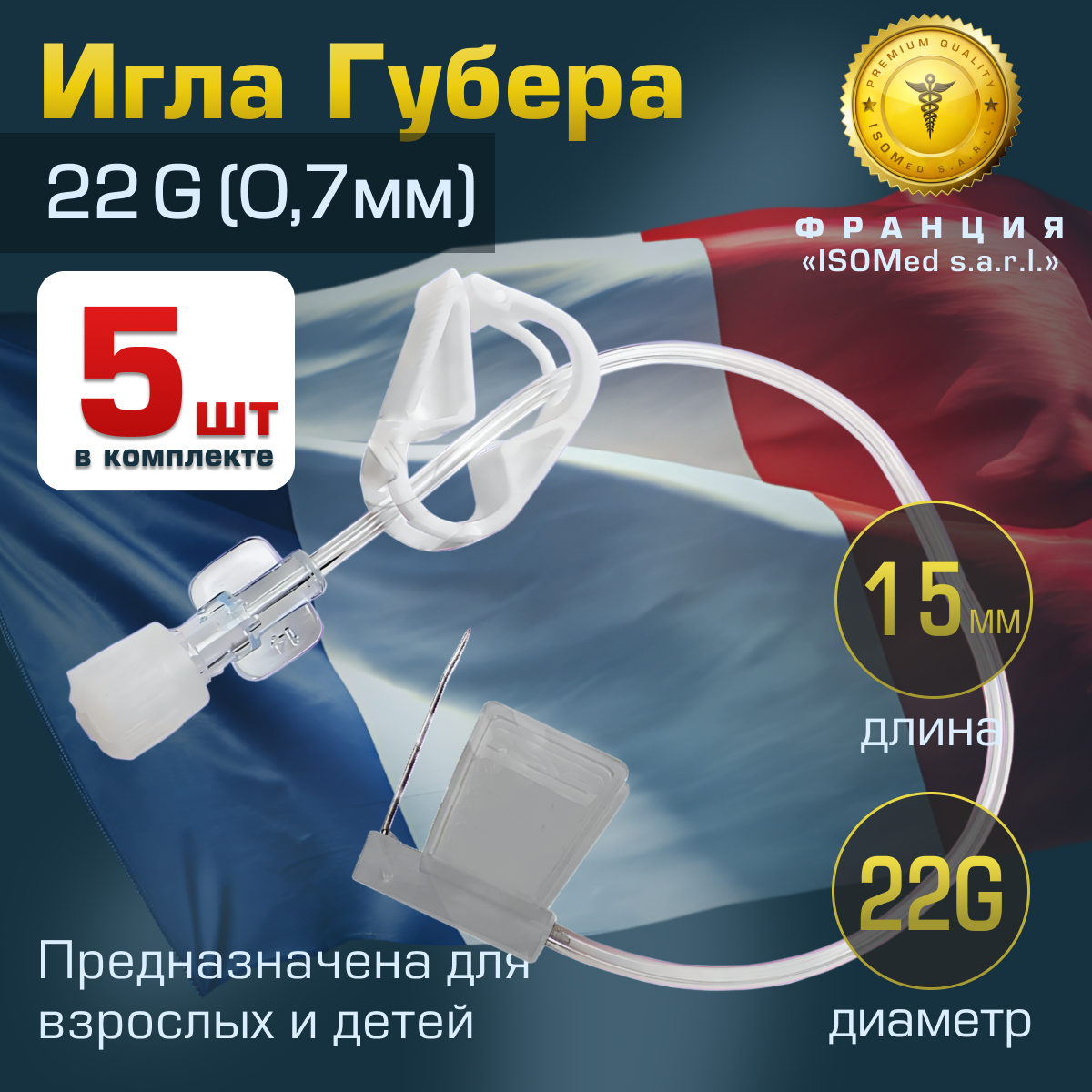 - Диаметр: 22G (0,7 мм)
