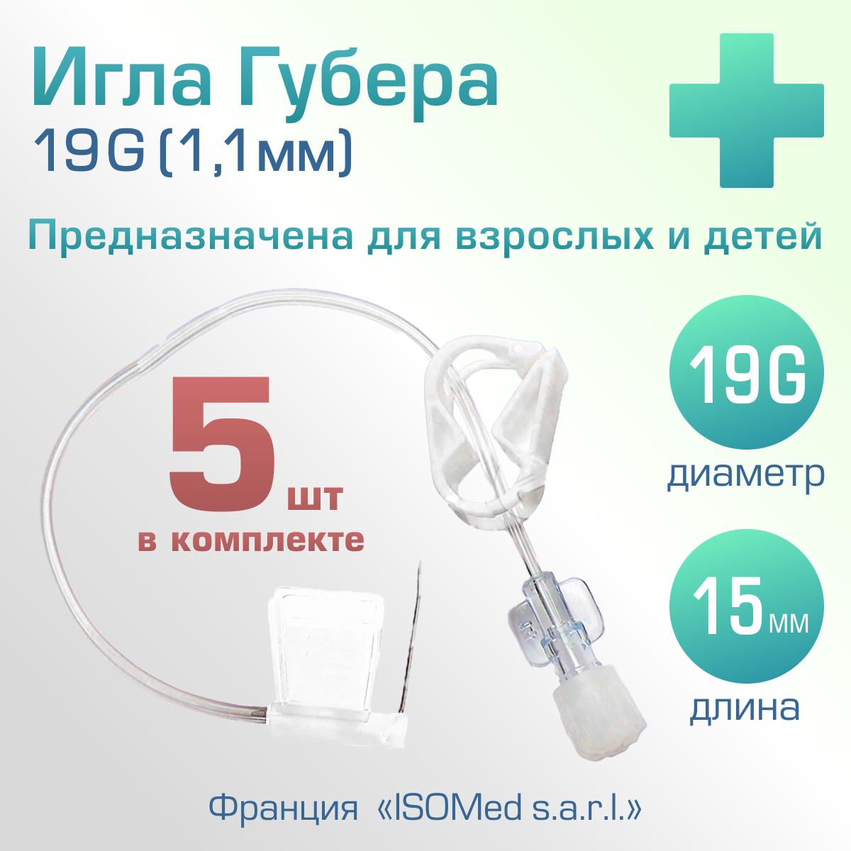 Игла Губера (для инфузии), диаметр 19G (1,1 мм), длина 15 мм (комплект 5 штук): сравнение цен, характеристики, фото, актуальное наличие и цены.