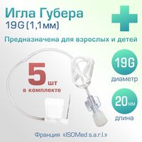 Игла Губера (для инфузии), диаметр 19G (1,1 мм), длина 20 мм (комплект 5 штук): сравнение цен, характеристики, фото, актуальное наличие и цены.