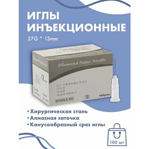 Купить Иглы инъеционные 27G *13 mm 100шт Diamond Nano Needle с доставкой по всей России.