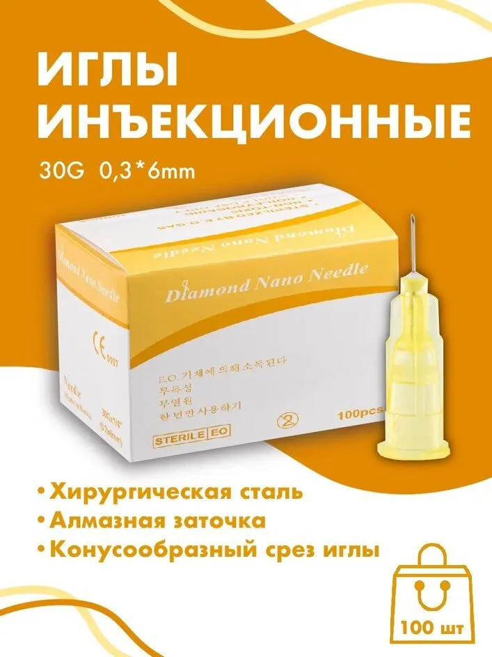 Иглы инъеционные 30G 0,3×6 mm 100шт Diamond Nano Needle: сравнение цен, характеристики, фото, актуальное наличие и цены.