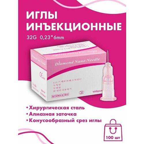 Купить Иглы инъеционные 32G 0,23×6 mm 100шт Diamond Nano Needle с доставкой по всей России.