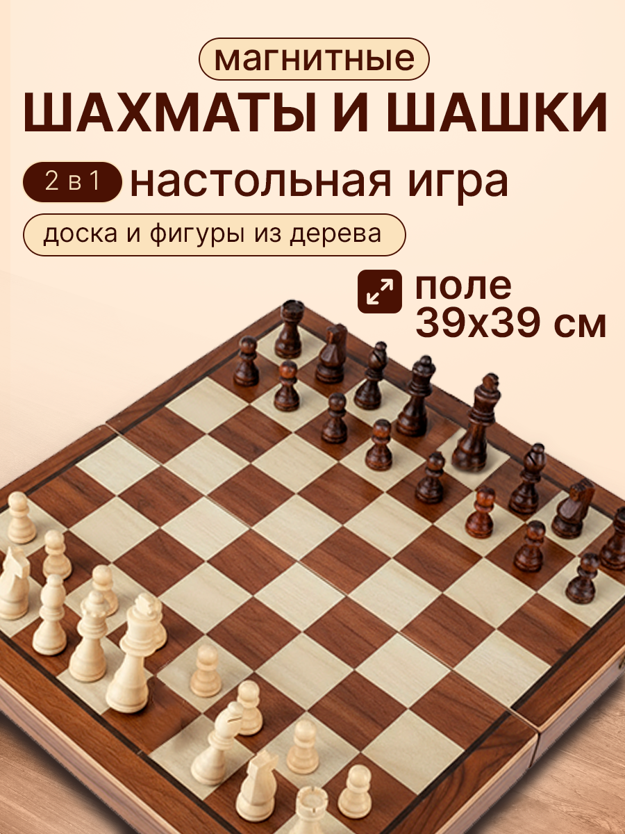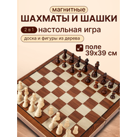 Игра 2 в 1. Шахматы, шашки магнитные (поле 39х39 см, доска-дерево, фигуры-дерево) (арт. ИН-0392): сравнение цен, характеристики, фото, актуальное наличие и цены.