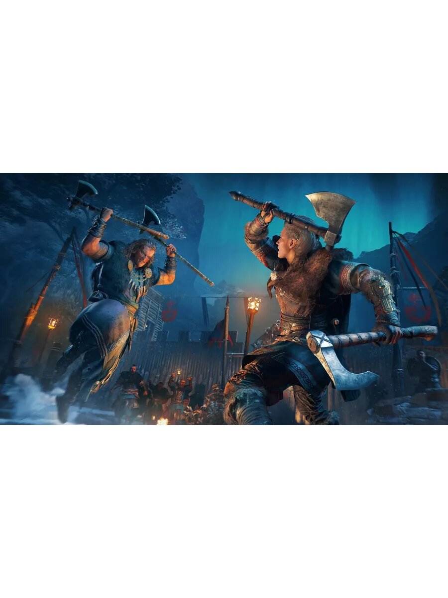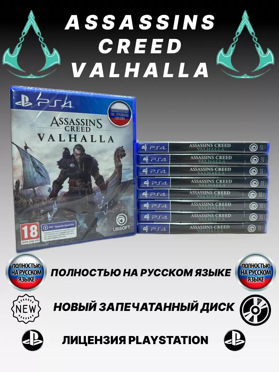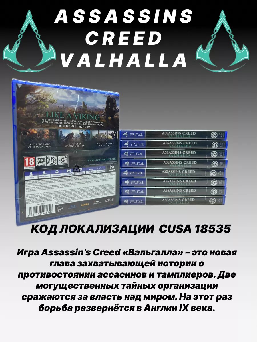 Assassin's Creed: Вальгалла (Valhalla) (PS4, русская версия) Важно! В этой игре гарантированно доступна озвучка на Русском языке после установки обновлений. Если у вас после установки игры с диска, после установки всех обновлений (нужно перед установкой подключить консоль к интернет и войти в учетную запись PSN), в меню этой игры недоступен выбор озвучки на Русском языке, нужно сделать следующее: - Зайти в раздел в "Управление данными игры" - Выбрать желаемый язык игры (Русский) - Скачать предложенное обновление - Затем в настройках уже самой игры выбрать язык озвучки Русский Доступно бесплатное обновление до версии PS5 Перевод на русский язык: - "Русская версия" означает, что в игре гарантированно доступны озвучивание, интерфейс и субтитры на русском языке. При этом, обложка коробки может быть на английском языке, либо других языках, в зависимости от партии поставки. Этот товар - абсолютно новый, лицензионный, в фирменном пластиковом боксе. Розничное издание, на физическом носителе, упаковано на заводе изготовителе в пленку. Техническая поддержка по этому товару (вопросы по установке, запуску, опции), с опытом поддержки более 15-лет в категории Видеоигры, осуществляется продавцом. Продавец этого товара на Озон - ООО "1С-Софтклаб", дистрибьютор и издатель видеоигр SOFTCLUB (Софтклаб) со стажем более 15-ти лет, для консолей Sony Playstation 5, Sony Playstation 4, Xbox One, Xbox One S, Xbox One X, Xbox Series X, Nintendo Switch, Nintendo Switch Light, Nintendo Switch OLED на территории России и стран СНГ. Совместимость и требования. - Можно играть на консолях PS4 и PS5 - Необходимо установить через интернет обновления, чтобы в игре была озвучка на русском языке Описание IX век нашей эры. Из-за непрерывных войн и скудеющих ресурсов выживать в землях Норвегии становится все труднее. Викинг Эйвор ведет свой клан через Северное море к богатым берегам враждующих королевств Англии. Перед викингами стоит задача – любой ценой обосноваться на новой земле, которая станет их домом. Нового героя Assassin’s Creed взрастили на легендах о битвах и воинской славе. Вам предстоит сыграть за яростного викинга по имени Эйвор. Исследуйте живописный и таинственный открытый мир в суровом антураже Англии в темные века. Уничтожайте врагов, развивайте селение и усиливайте влияние, чтобы заслужить место среди богов в Вальгалле. Гремят войны. Распадаются королевства. Это эпоха викингов. Ключевые особенности • Напишите свою сагу о викингах Улучшенная ролевая механика позволит вам влиять на развитие персонажа и окружающий мир. Каждый сделанный выбор – союзника, тактики в бою, варианта ответа в диалоге или элемента снаряжения – сформирует ваш собственный путь к славе. • Боевая система Сражайтесь, держа в обеих руках по топору или мечу, или используйте оружие в комбинации со щитом. Освойте беспощадный стиль боя викингов. Рубите головы, устраняйте противников издалека или задействуйте скрытный клинок, незаметно приблизившись к цели. Испытайте себя в битвах против самого богатого набора беспощадных противников в истории Assassin’s Creed. • Открытый мир Совершите путешествие от таинственных и суровых берегов Норвегии к прекрасным, но недоступным королевствам Англии и не только. Прочувствуйте образ жизни викингов, занимаясь рыбной ловлей и охотой или проводя время за играми и выпивкой. • Устраивайте набеги Сражайтесь с саксами и штурмуйте их крепости по всей террито