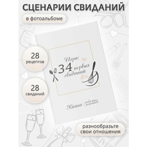 Игра для пар с рецептами 34 Первых Свиданий "Книга Любимых Рецептов" - оригинальный способ разнообразить свою семейную жизнь интересными заданиями. Это книга, за обложкой которой скрывается 28 вкусных рецептов и 28 заданий, которые помогут провести незабываемый вечер для вашей пары. Чтобы пройти квест, сотрите скретч слой - за ним скрывается задание, которое нужно пройти вдвоем. После его завершения вы можете сделать фотографии и создать целый фотоальбом. Это настоящая карта любви, в конце пути которой вы посмотрите друг на друга новыми глазами. Задания для взрослых не однообразные, поэтому заскучать точно не удастся! Такие прикольные игры для влюбленных станут прекрасным подарком для своей половинки или пары друзей - разнообразьте свой Новый год, брачную ночь после свадьбы или день рождения интересными играми. Азарт и ощущение сюрприза от скрытых квестов станет хорошим дополнением и раззадорит его и ее на выполнение игры на все 100%!
