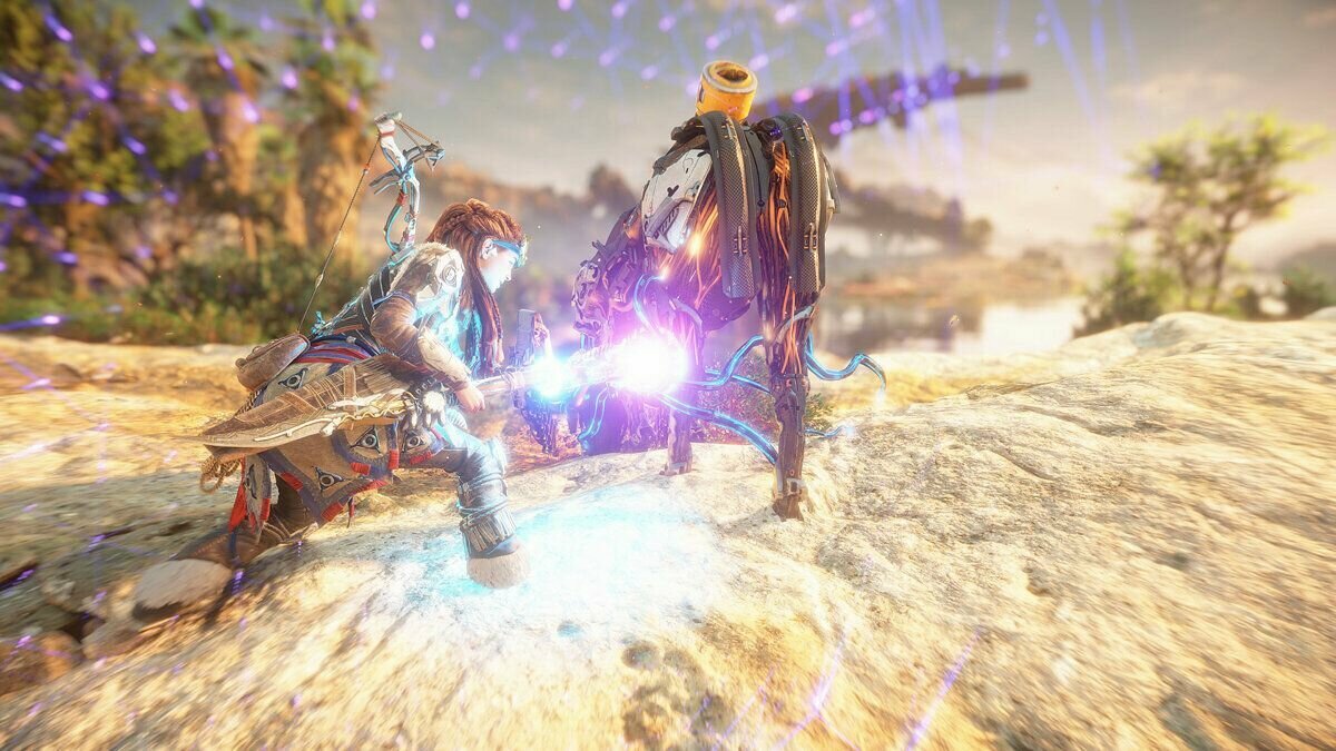 В «Запретном западе» на PS5 и PS4 игроки отправятся на ранее недоступные просторы, травянистые долины, пустыни и заснеженные поля сменятся более тёплым, можно даже сказать тропическим климатом. В арсенале Элой появится трубка для подводного плаванья, так что с водоплавающими механическими тварями можно будет сразиться на их территории. Основа игрового процесса остаётся прежней — экшн-приключение с видом от третьего лица, элементами RPG, прокачкой вооружения и крафтом боеприпасов под разные случаи. Ведь каждый противник уязвим к своим элементам.