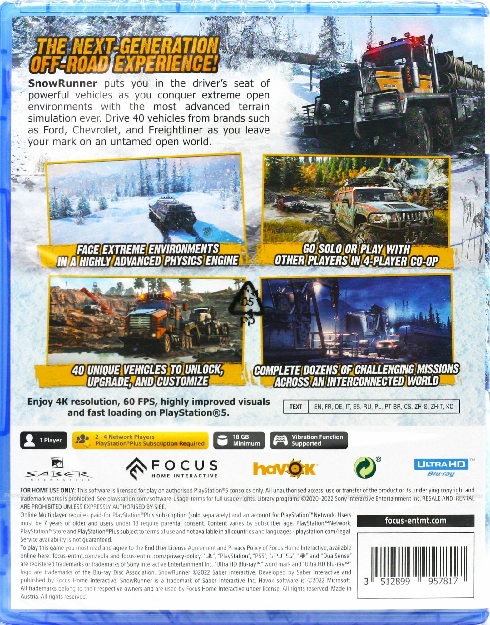 Купить Игра SnowRunner PS5 (Диск) Русские субтитры с доставкой по всей России. Игра SnowRunner PS5 (Диск) Русские субтитры: сравнение цен, характеристики, фото, актуальное наличие и цены.