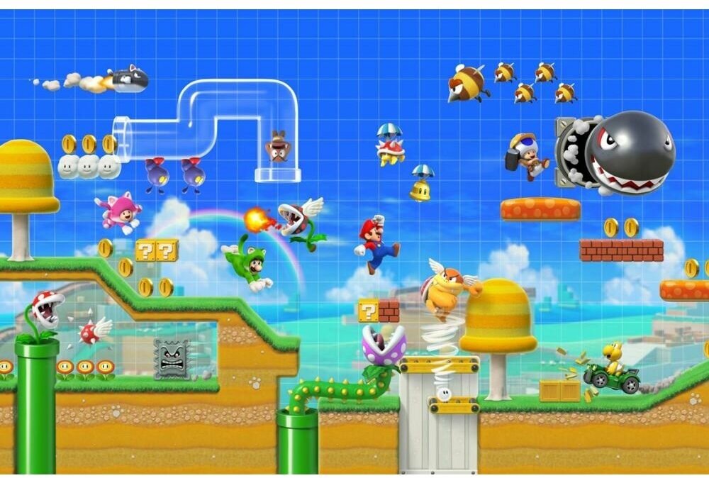 Проектировать собственные уровни Super Mario очень просто. На этот раз два игрока смогут вместе творить на одном экране. Просто выбирайте знаковые предметы и легендарных врагов и расставляйте их в нужном порядке. Выбирайте из множества различных тем и стилей, включая новый стиль Super Mario 3D World. Также можно сочетать знакомые элементы, чтобы создавать препятствия, невиданные доселе в играх о Super Mario.