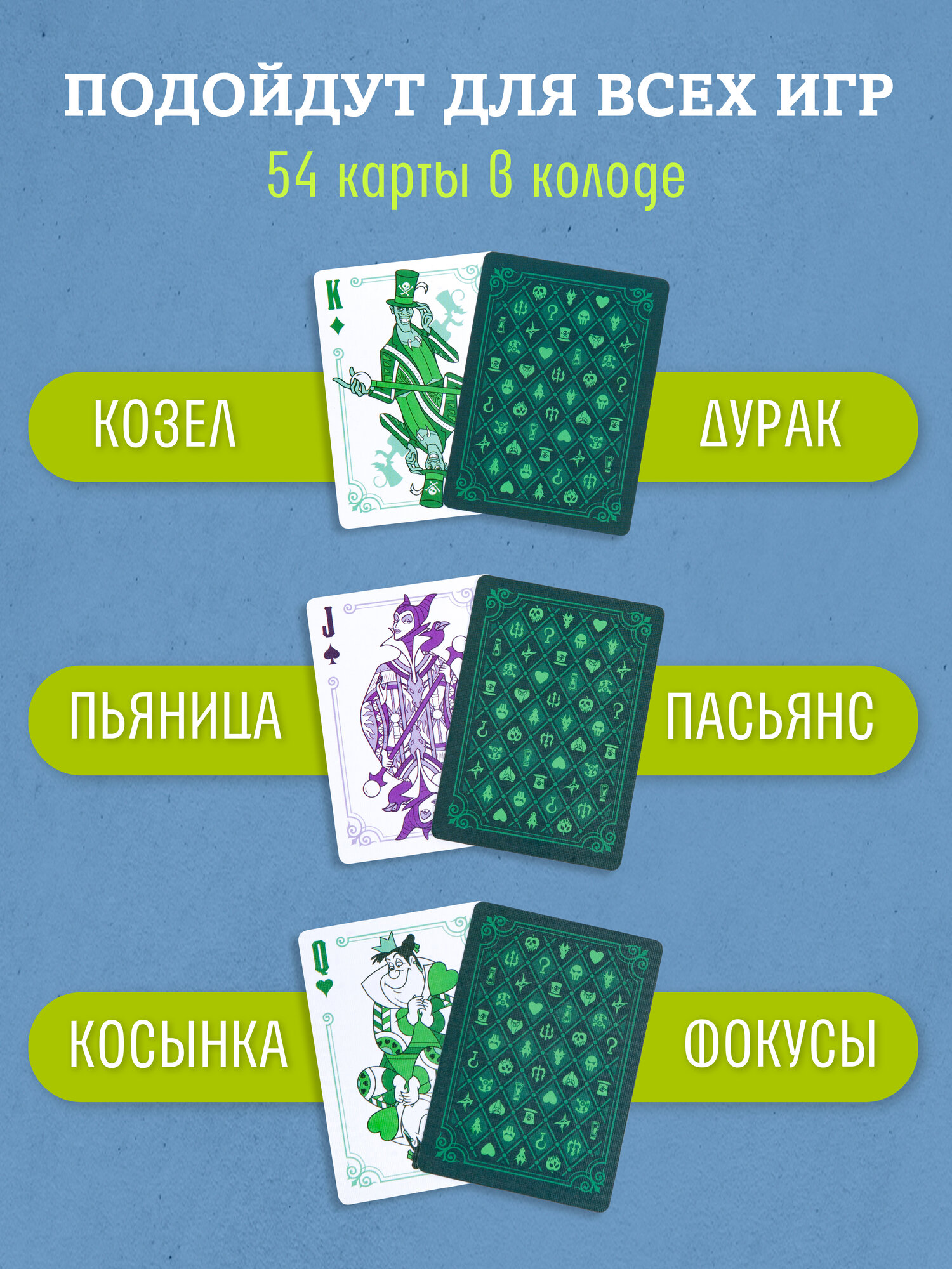 Купить Игральные карты Bicycle Disney Villains green / Диснеевские Злодеи зеленые с доставкой по всей России.