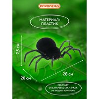 5 причин купить игрушку паук хищный на радиоуправлении Игроленд: • оригинальный презент девочкам и мальчикам старше 6 лет • реалистичные движения — впечатлят детей и взрослых • подсветка глаз создает особый магический эффект • необычный пульт радиоуправления в виде паутины • для работы нужно регулярно заменять батарейки — 2 АА + 2 ААА.