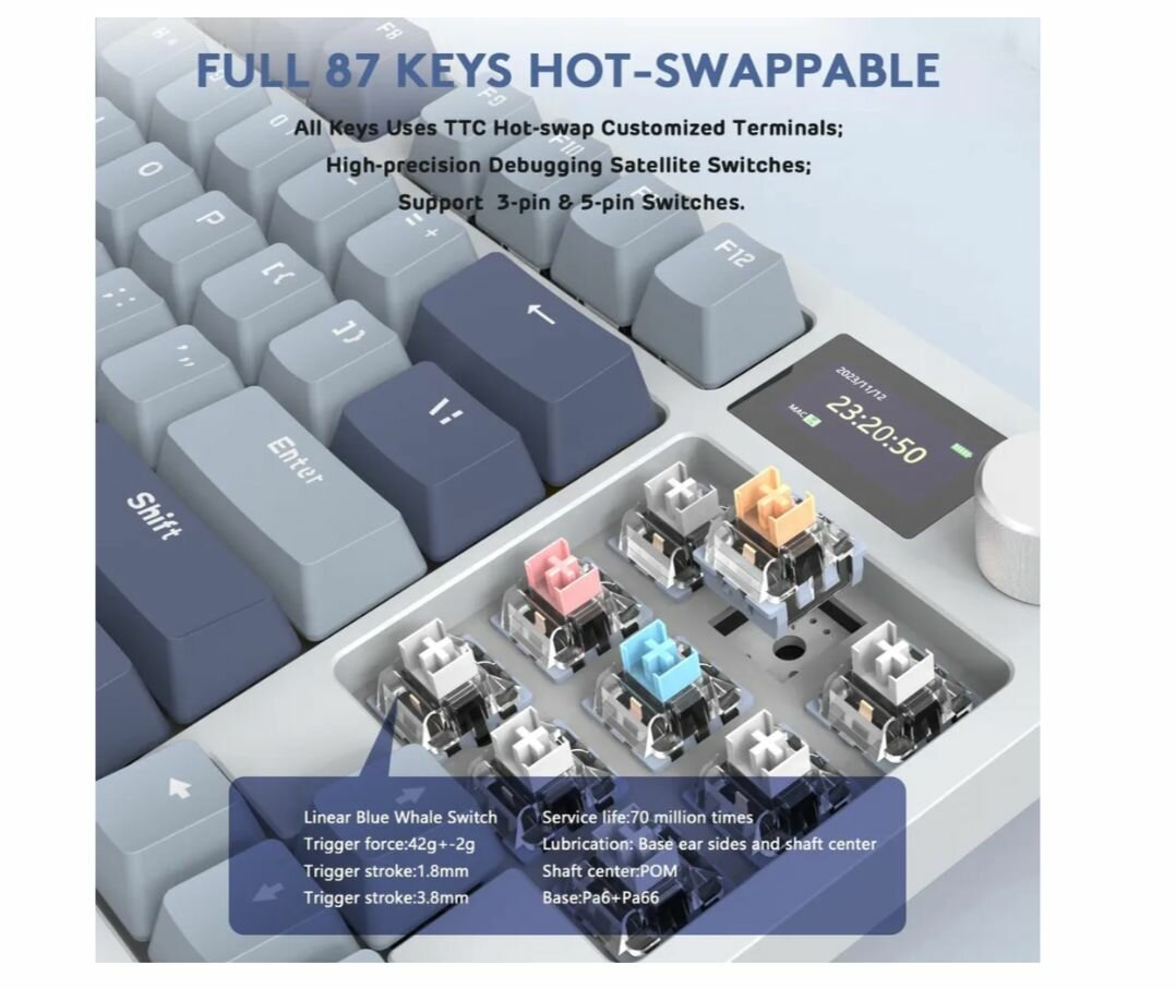 Клавиатура игровая Attack Shark K86 Blue RGB (RUS), беспроводная, 87 кнопок, HotSwap