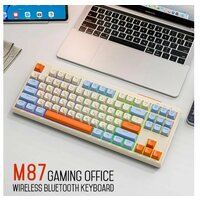 Купить Игровая беспроводная мембранная клавиатура ZiyouLang M87 Bluetooth/2.4G русская раскладка, Бежевый/голубой с доставкой по всей России.