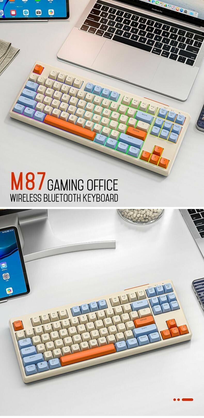 Игровая беспроводная мембранная клавиатура ZiyouLang M87 Bluetooth/2.4G русская раскладка, Бежевый/голубой: сравнение цен, характеристики, фото, актуальное наличие и цены.
