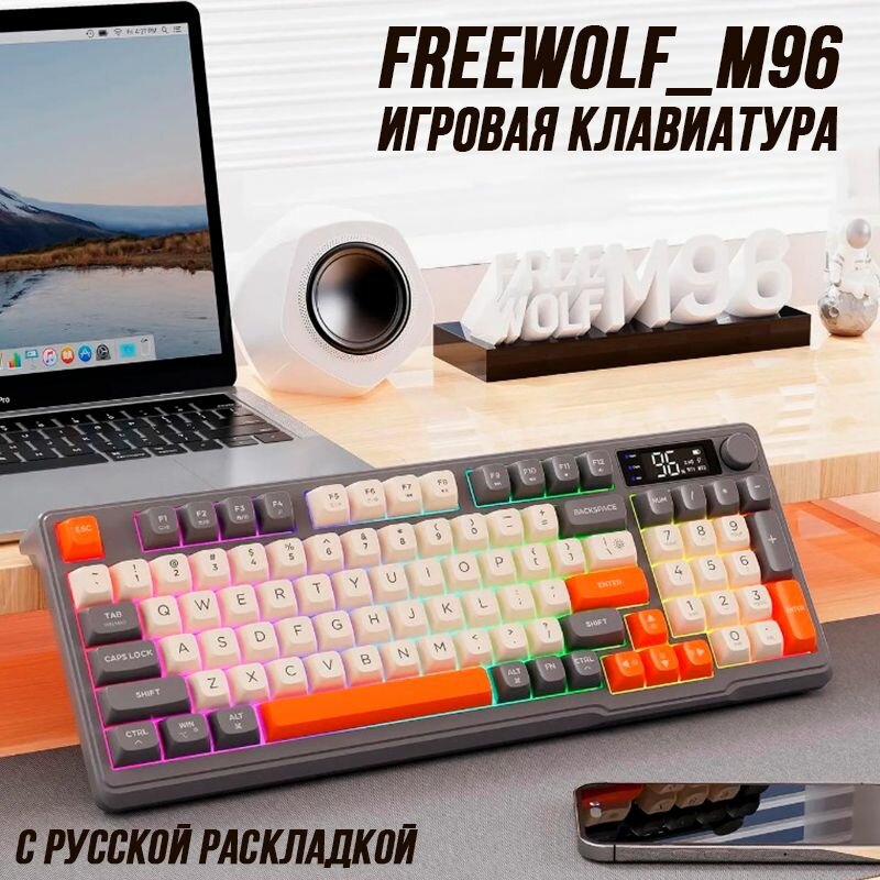 Игровая беспроводная мембранно-механическая клавиатура FreeWolf_M96, RGB подсветка, инфо-дисплей. Серая: сравнение цен, характеристики, фото, актуальное наличие и цены.