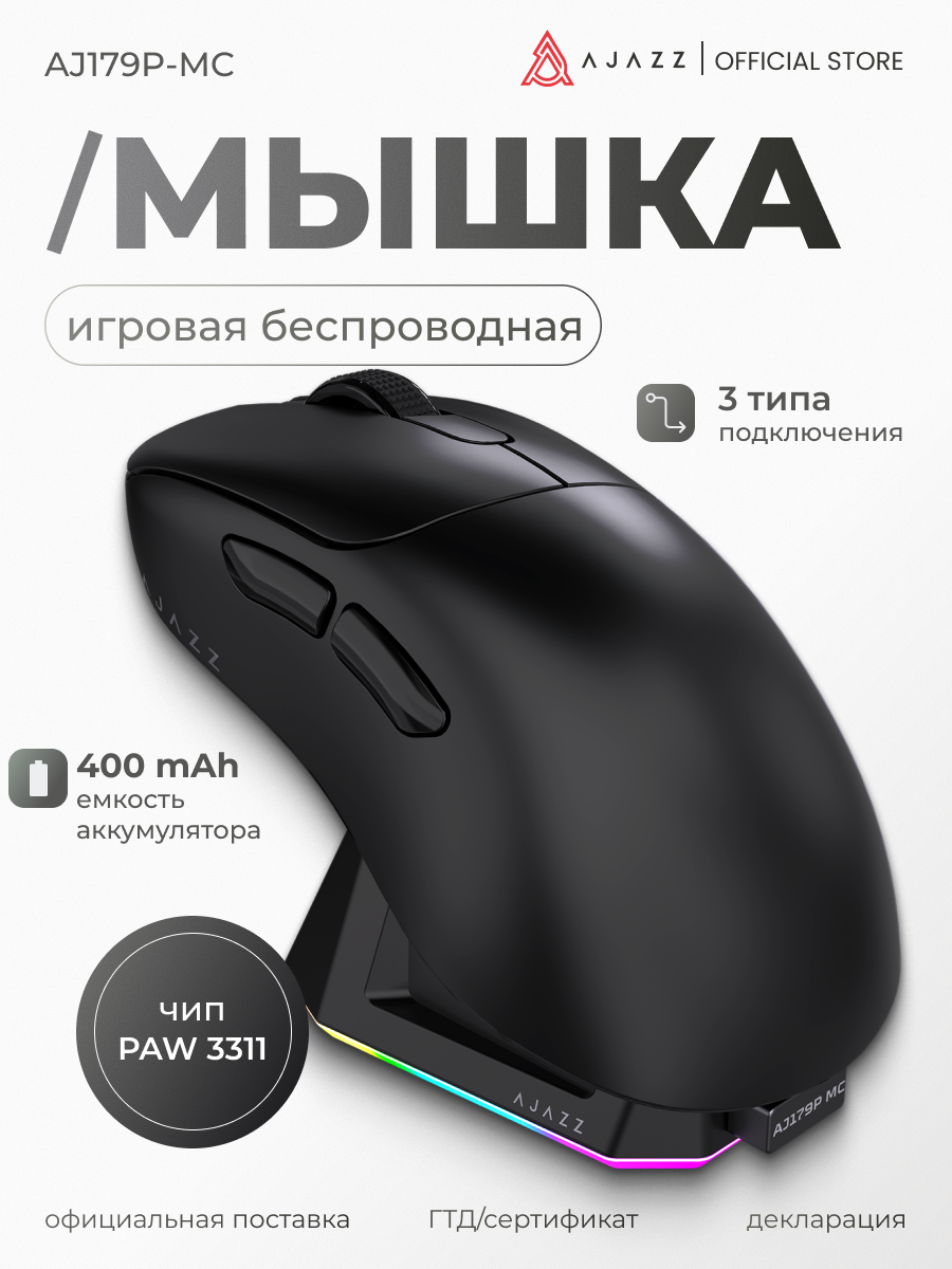 Игровая беспроводная мышь AJAZZ AJ179P MC, черная, 3 режима подключения: сравнение цен, характеристики, фото, актуальное наличие и цены.